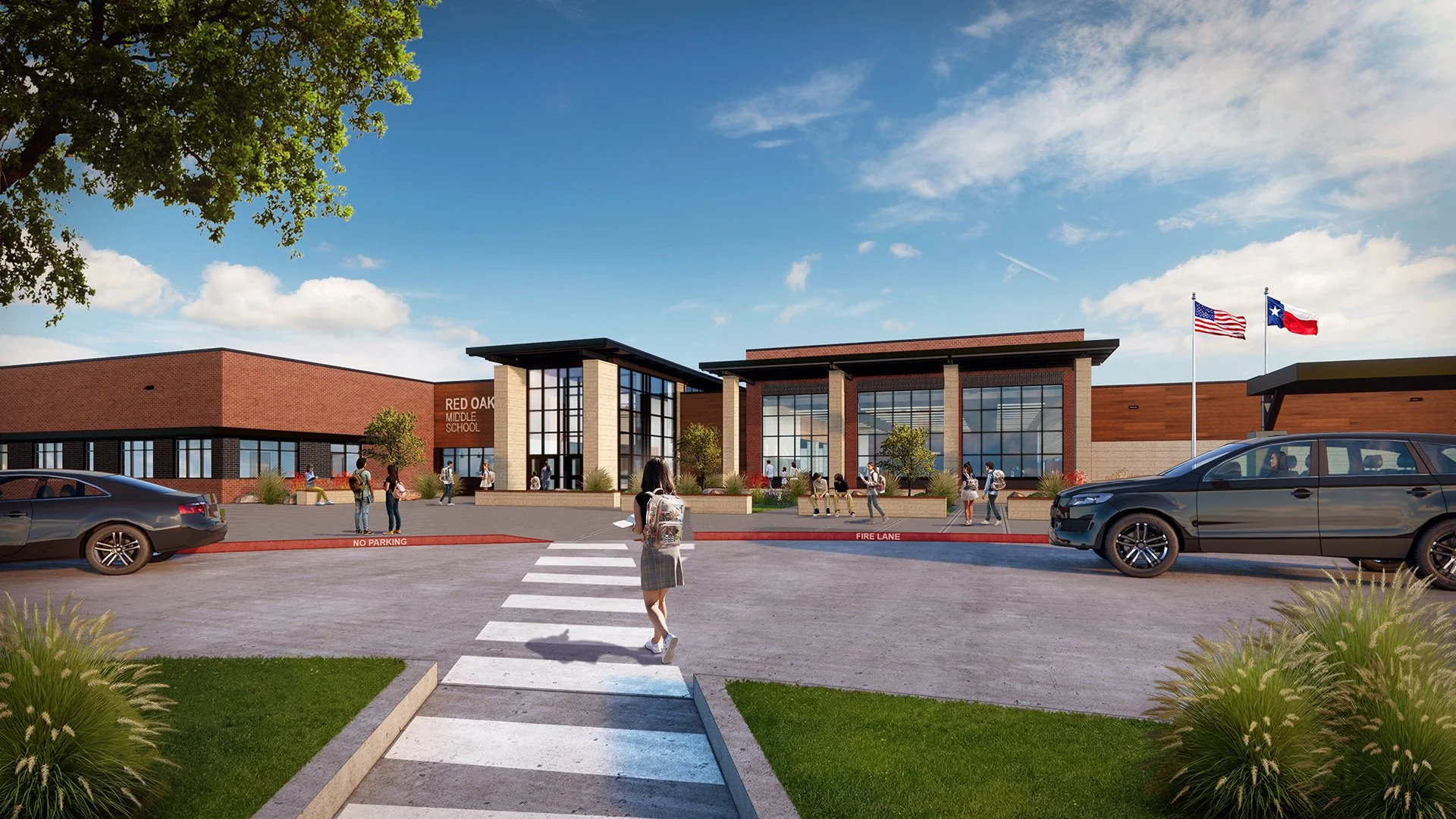Following the passage of a $97.5M bond in May 2023, a second Red Oak ISD middle school will be built on the west side of the District off Westmoreland Rd. south of Ovilla Rd. The new middle school will include a wing-concept layout with a capacity for up to 1,200 students in grades 6-8. Currently, Red Oak Middle School has about 1,550 students.